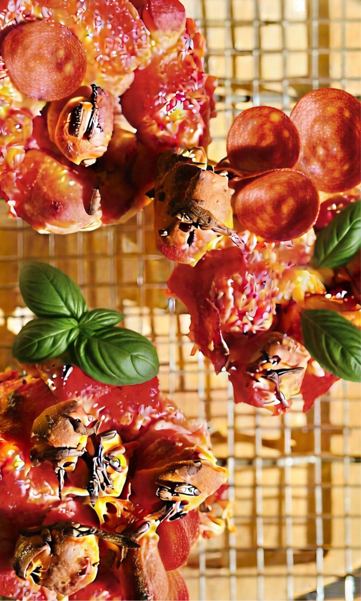 This creation is a pepperoni pizza cruffin that is a savory twist on the traditional sweet cruffin (a hybrid of a croissant and muffin), combining the rich, flaky layers of croissant dough with the bold, cheesy, and spicy flavors of pepperoni pizza.